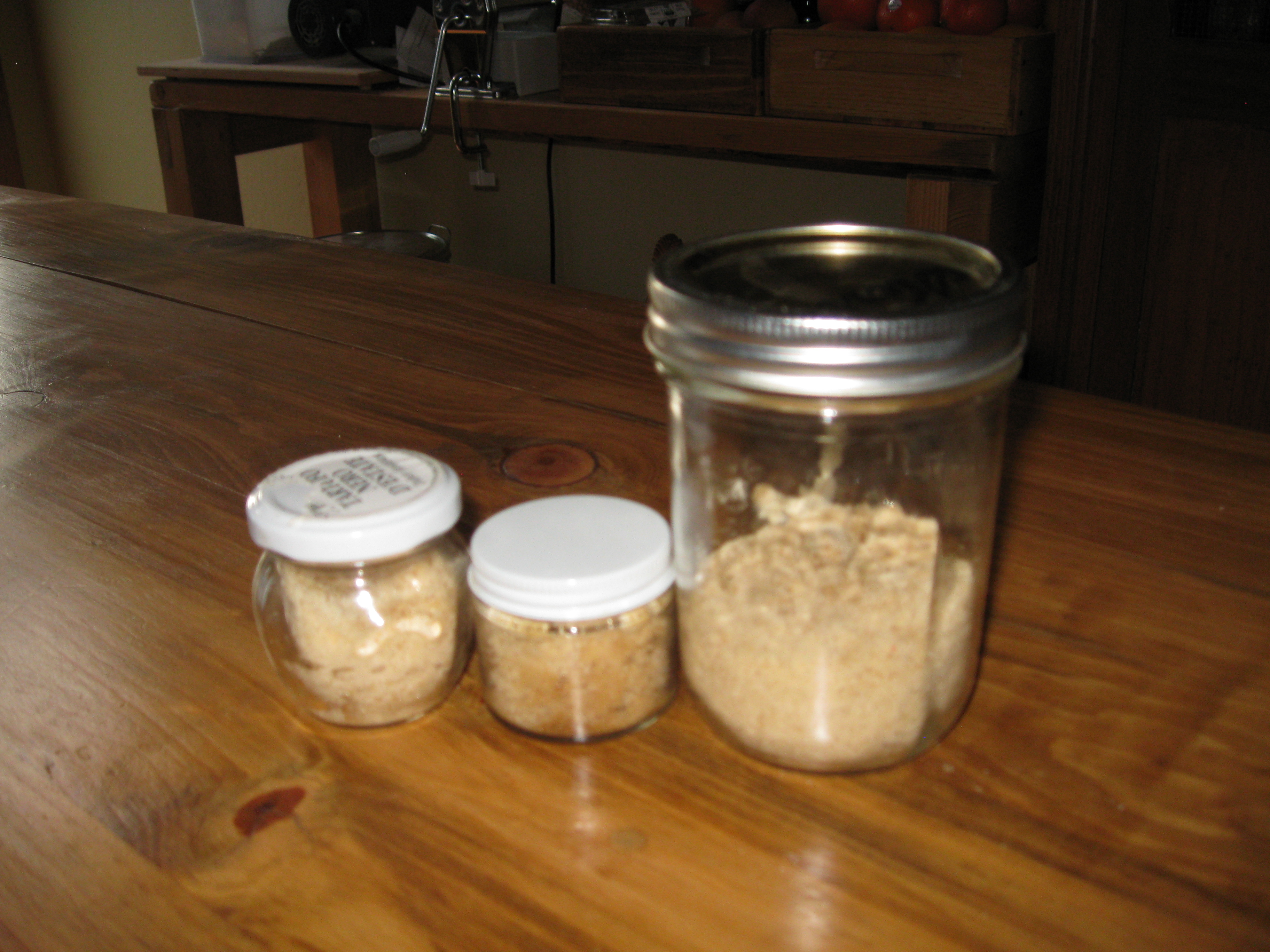 (the jars have been settling for increasing amounts of time from left to right in the photo). Once the liquid was clear, not cloudy as in this photo, we drained the liquid into a heavy pan and boiled it down until it was about 1/10th the original volume.