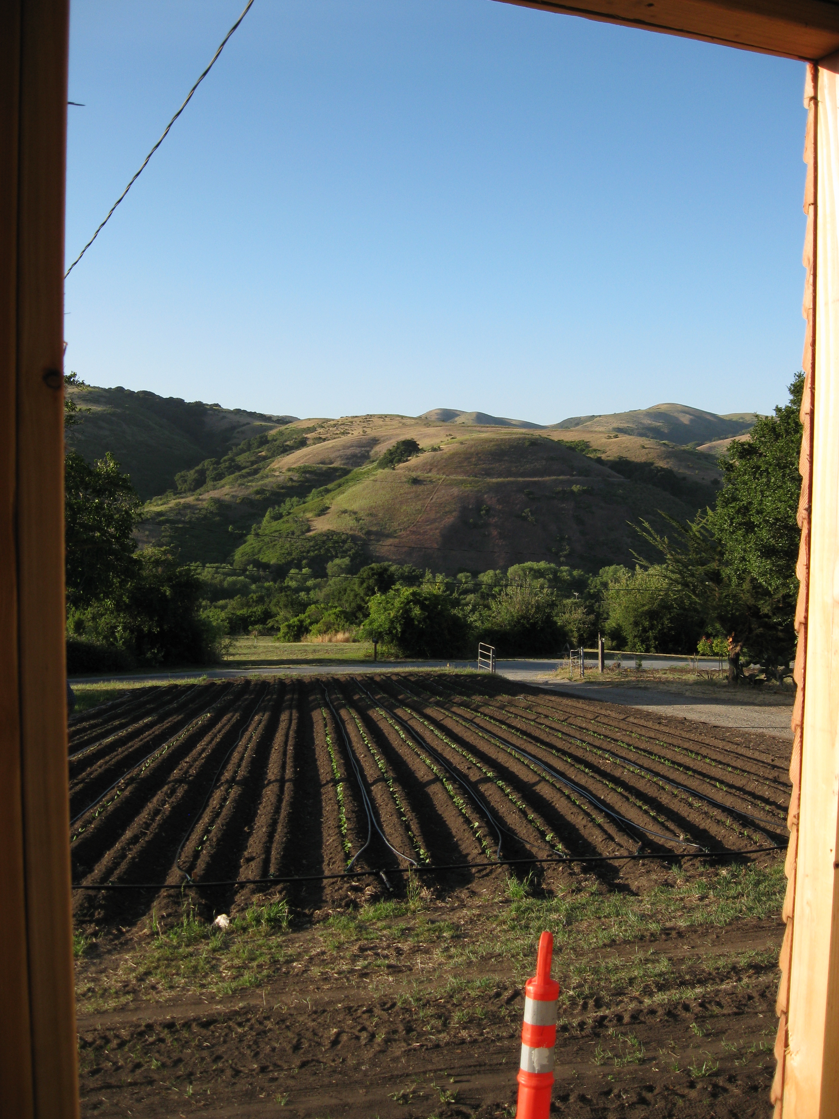 IMG_2934This is the only photo I took of our main field that year (2012). The bed furthest to the right in this photo was planted to two varieties of sweet sorghum, Topper and Rox Orange (from seedman.com).  Photo is from early June, about a week after planting.