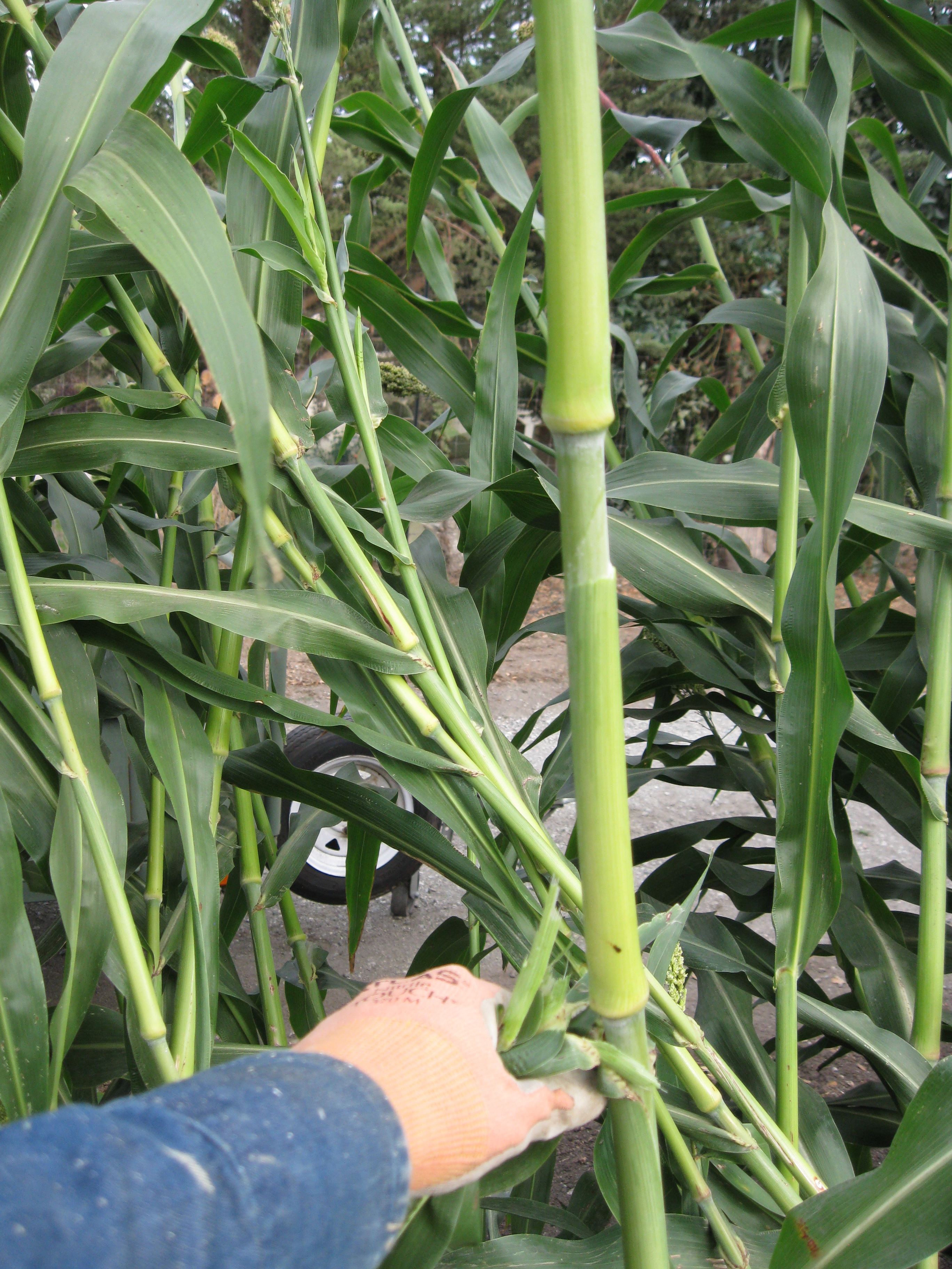 We cut the seed heads and peduncles off the plants a week before the pressing date.  In some varieties it is best to cut at least two nodes from the top, but we were feeling greedy. During the processing we found that most of the sugar was in the bottom, thicker parts of the stalk – so in retrospect cutting a shorter stalk might not result in much yield loss.
