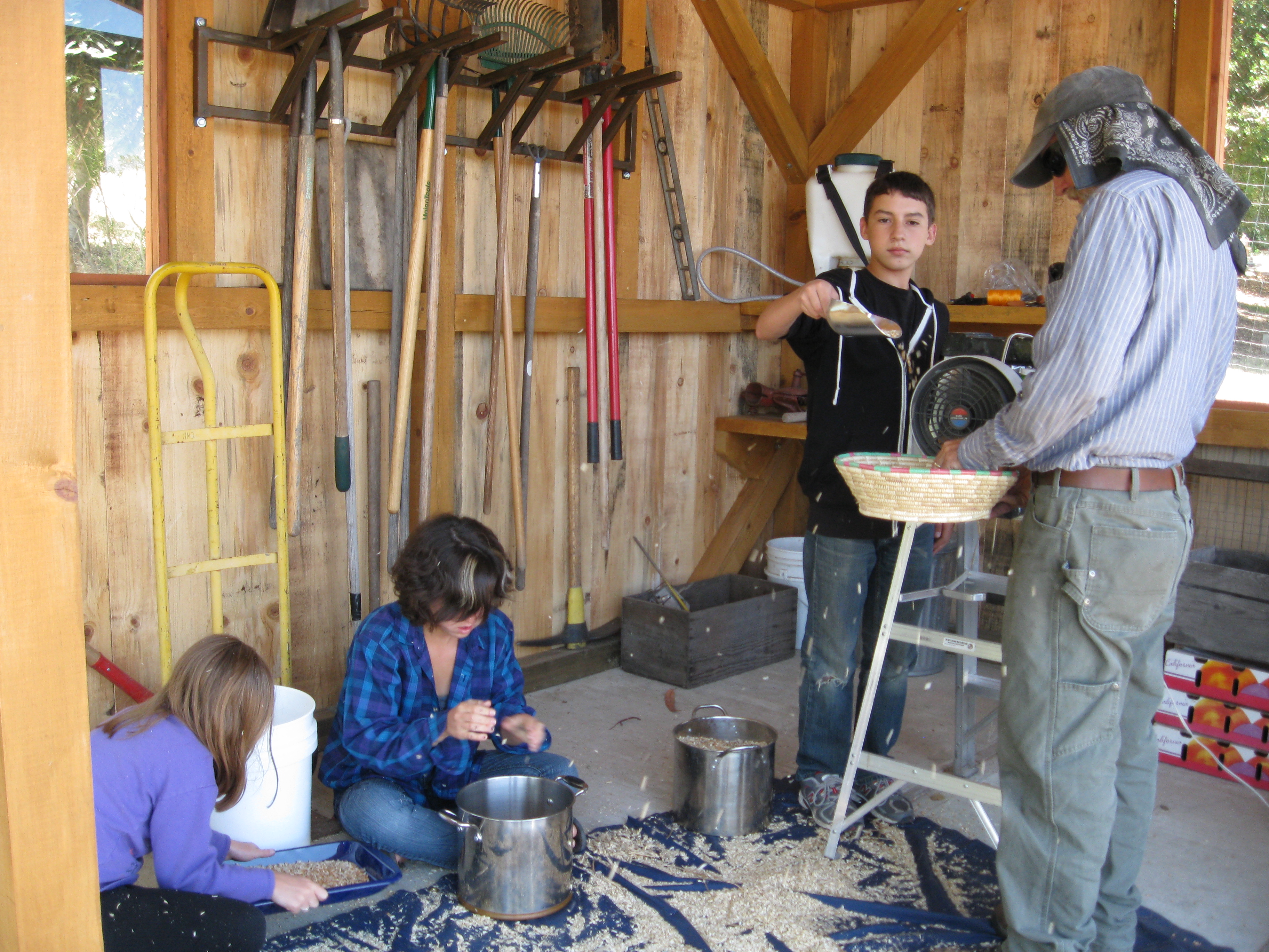 However – and I guess this is the part I really like – because of their diminutive size and growth characteristics there is much more to their harvest and use than there is to, say, those of an apple.  Hand picking individual grains is not practical, and with any harvest method more advanced than that comes the need to separate the grains from chaff and other plant trash.  The need for bulk picking and separation brings forward issues of efficiency and scale, and we have been exploring these as we move into more grain production.