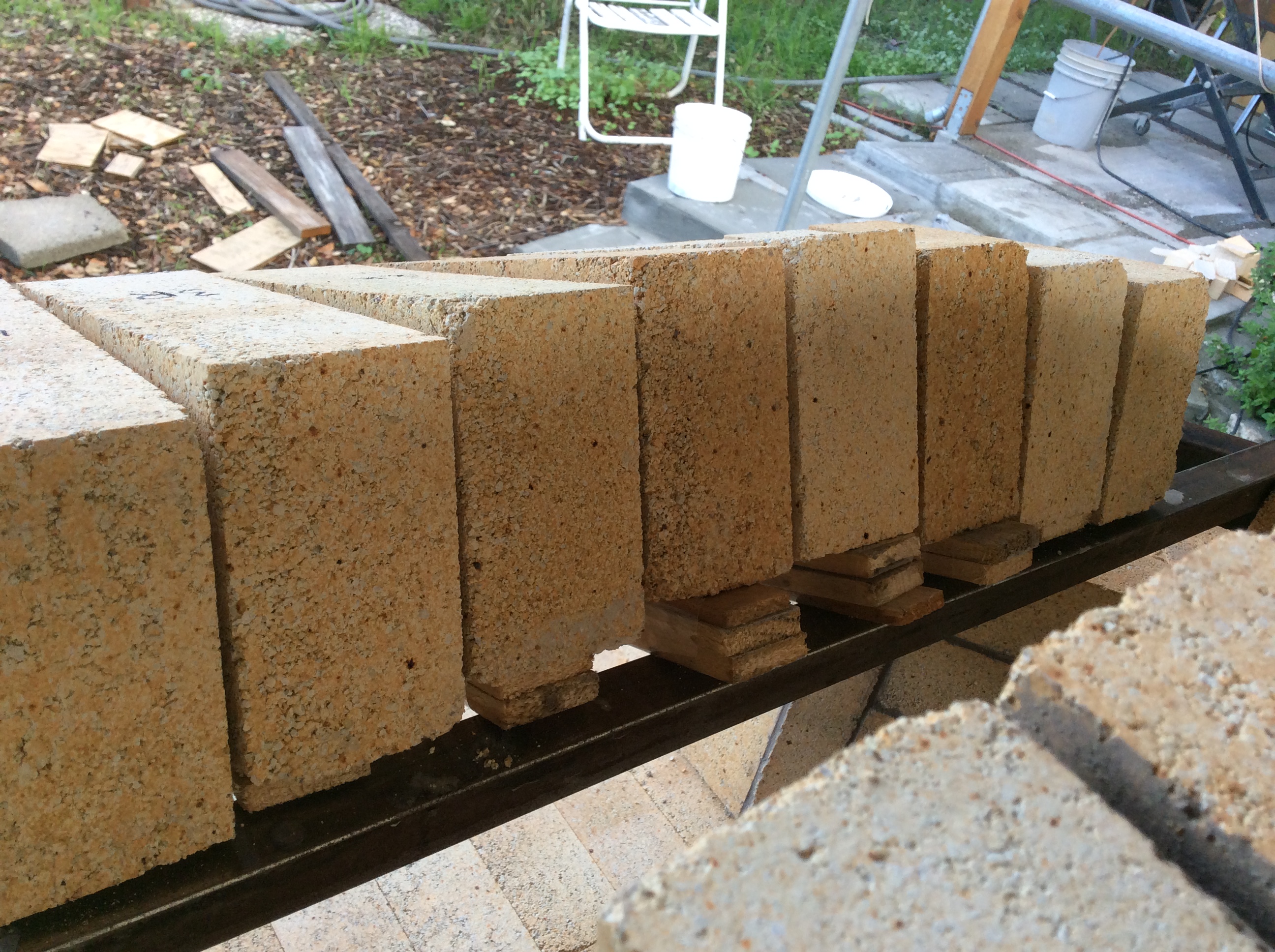 Shims on the back of each brick adjust them to the appropriate height.