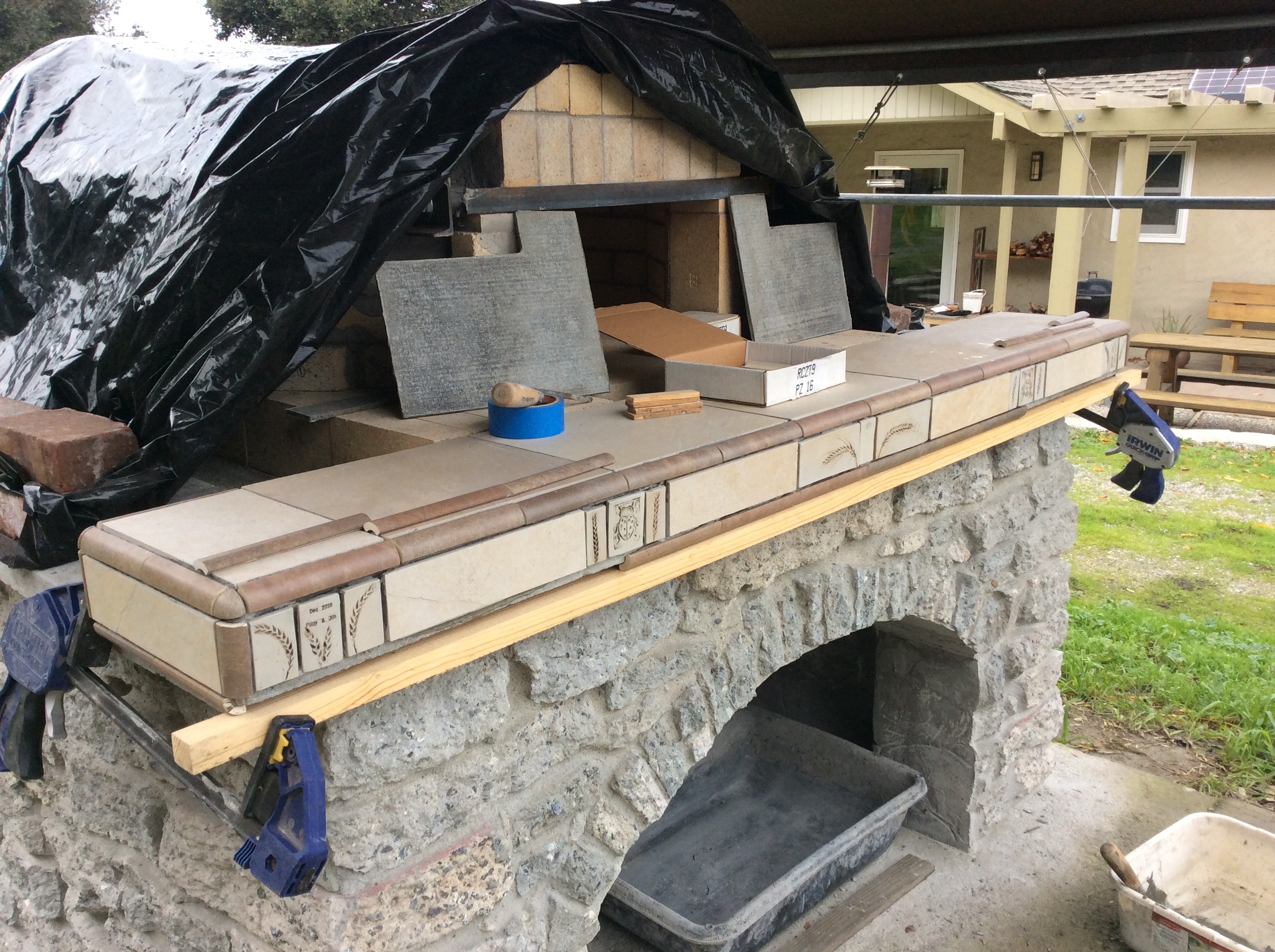 Setting the vertical mantle tiles.
