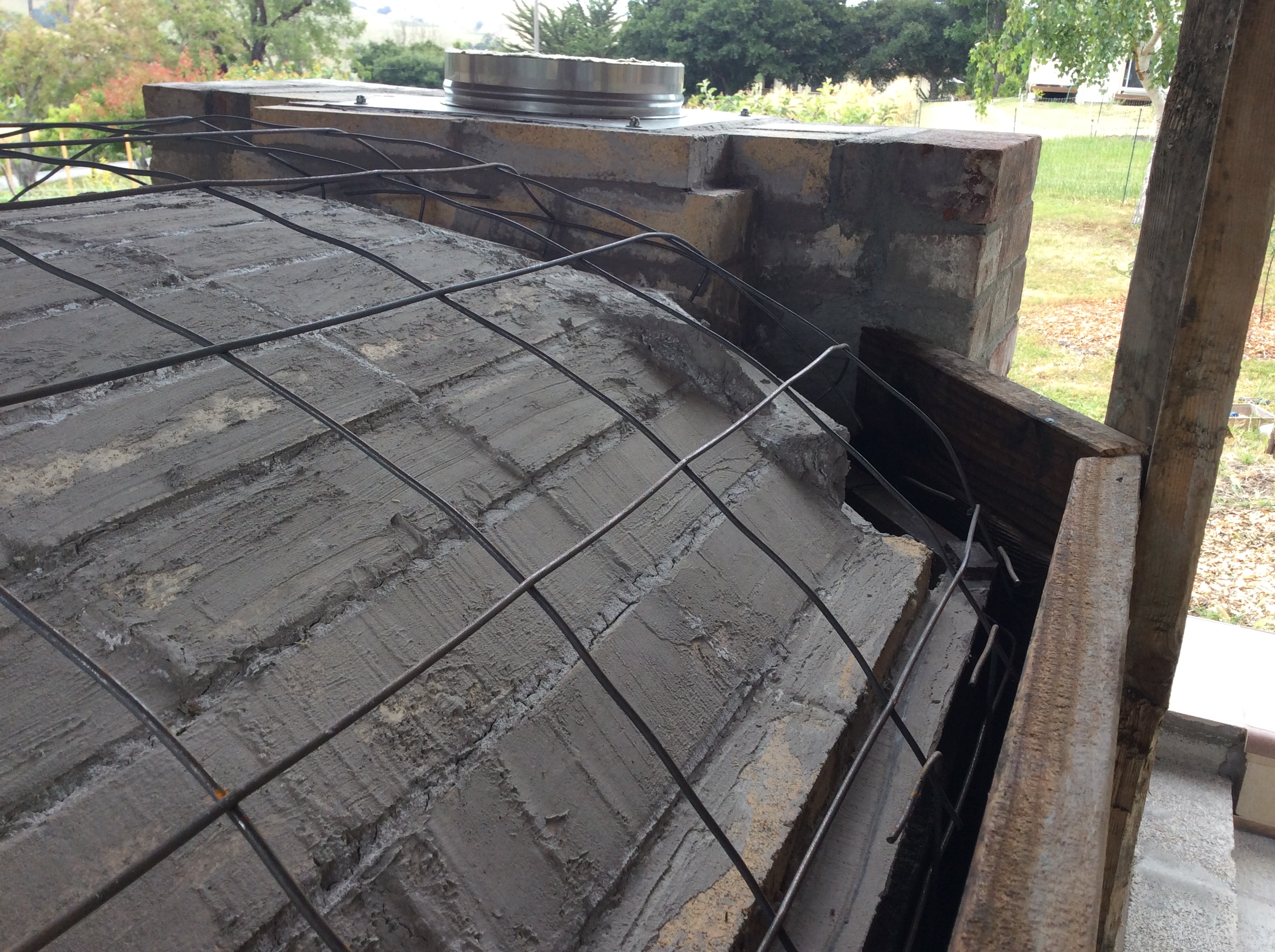 Wire mesh across the top of the oven, held 1.5″ above the firebrick by bending down ends of wire..